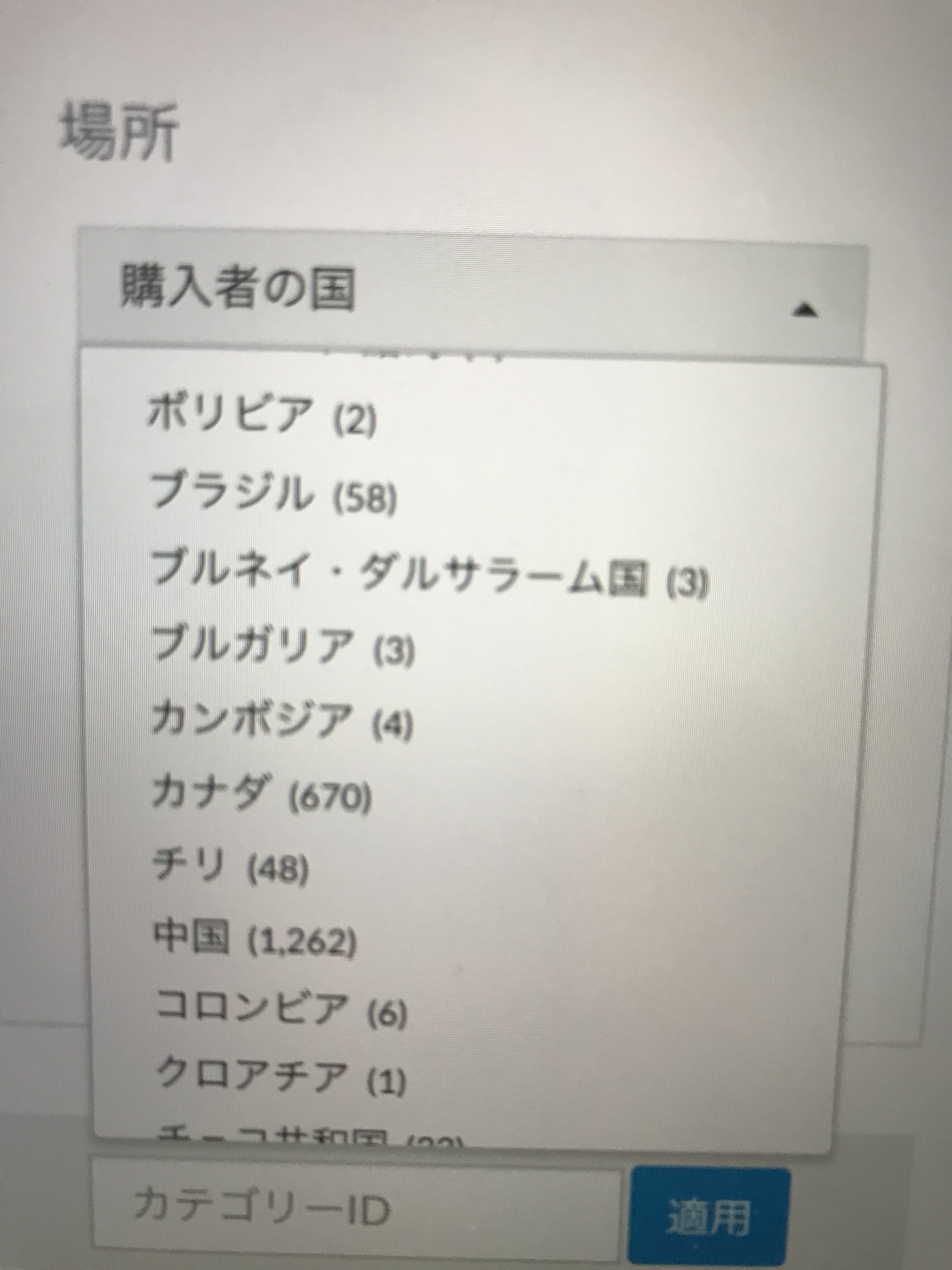 テラピークを使うと、購入者の国がわかります。