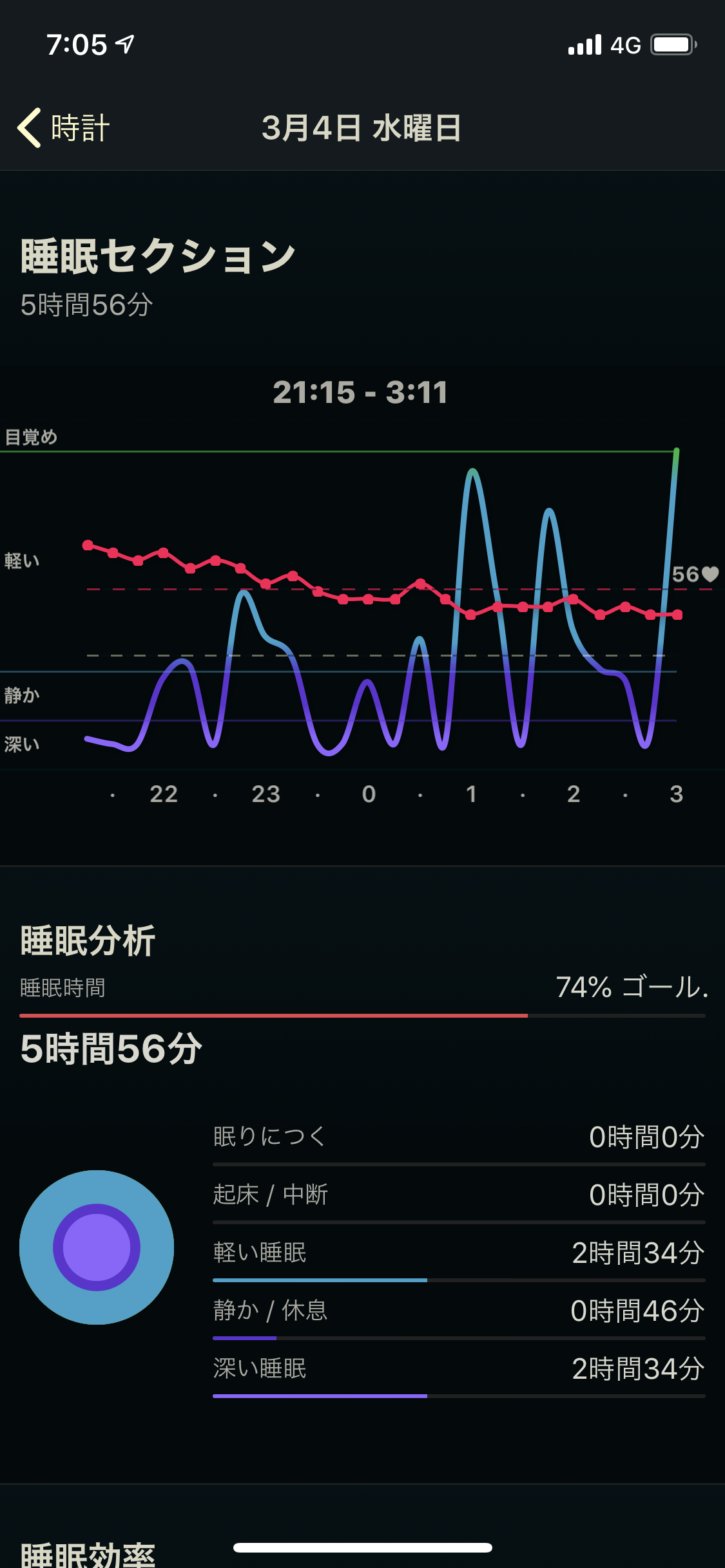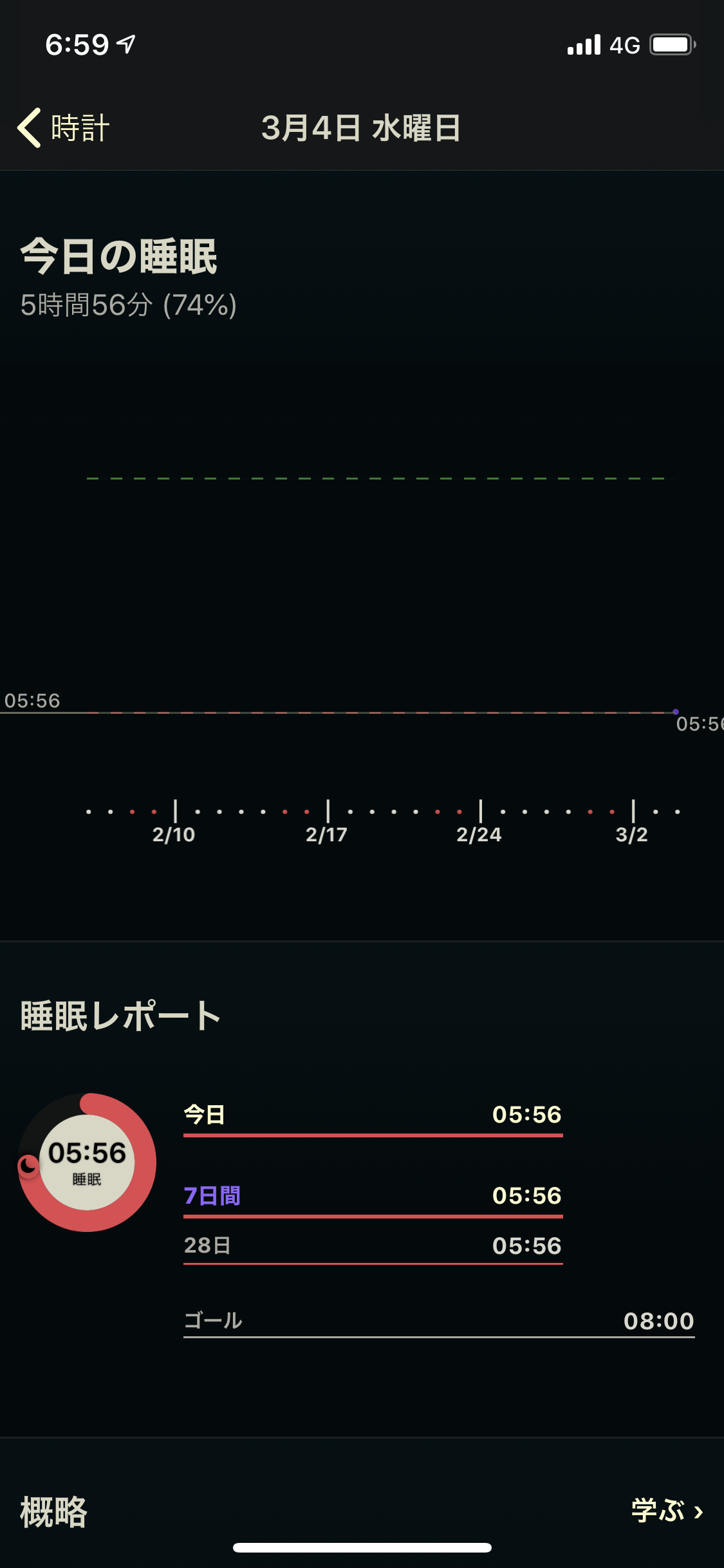 本日の睡眠時間は5時間56分。